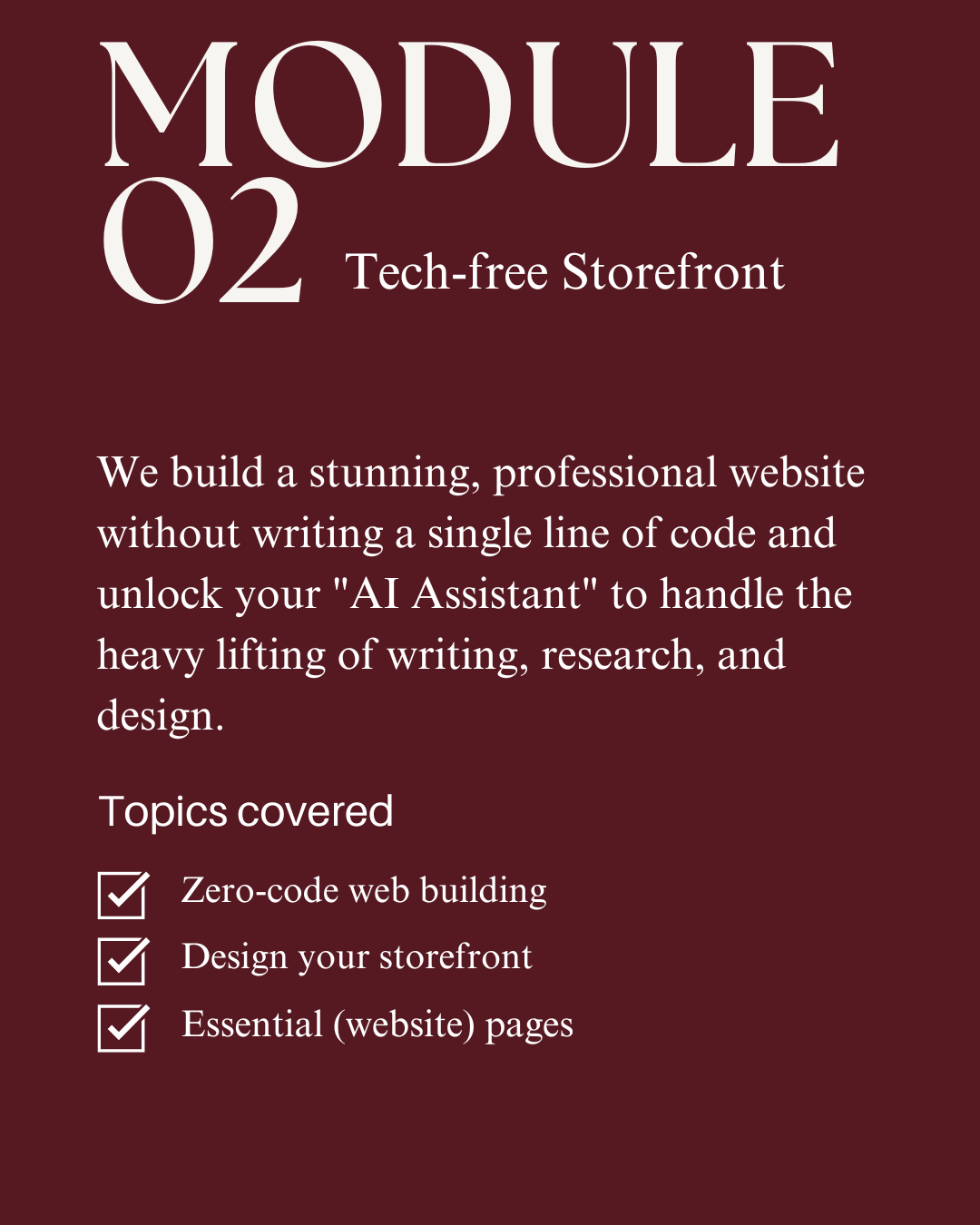 We build a user-friendly, functional website without writing a single line of code. Youâll leverage your "AI Assistant" to handle the heavy lifting of research, writing, and design.ÂSTEP 3: THE PROFIT PIVOT