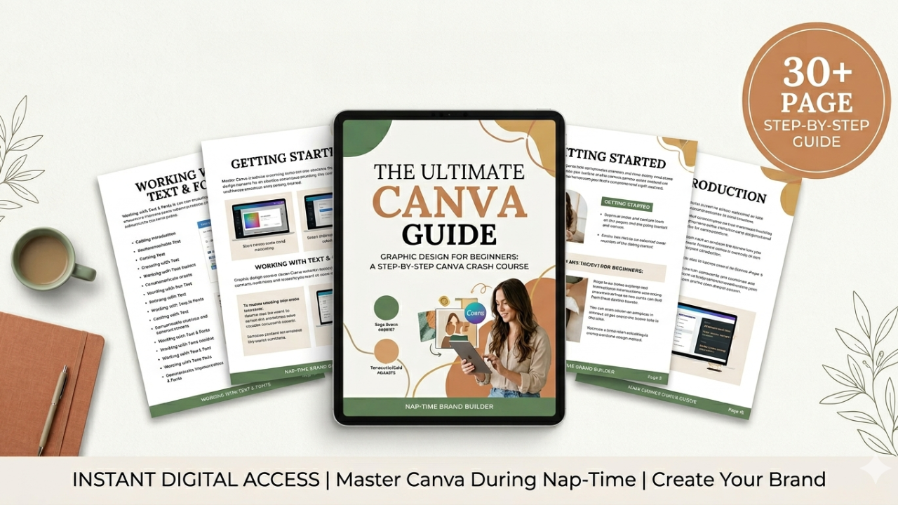 Master Canva with this comprehensive 30+ page guide. Become a pro and go from 'account setup' to 'launch-ready graphics'. No fluff. No tech-speak. Just the essentials.